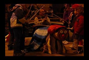 Mediante una canción y fuertes golpes de bastón se conseguía que este personaje “defecara” dulces, turrones y frutos secos.