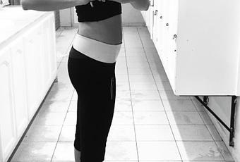 Muchas veces la barriga que nos vemos es más postural que otra cosa. Después del embarazo todavía mantenemos la postura de echar la barriga hacia adelante, así que parece que tenemos más barriga de la que realmente tenemos, por eso intenten respirar profundo, mantener el abdomen duro, y tirar los hombros hacia arriba para que vean como desaparece parte de la barriga.