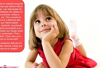 Hoy en clase la maestra preguntó a los alumnos que habían hecho el domingo. Las respuestas de los niños hablaban de salidas en bici, excursiones, visitas a parques, etc. Pero cuando le llegó el turno a Mariona ella contó que había estado dibujando, pintando, recortando, … El silencio acompañó a su respuesta hasta que Sergio quiso hacer su comentario: “Pero, ¿Eres boba? ¡Todo esto ya lo hacemos en la escuela!”