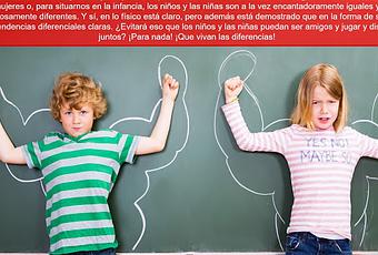 En el mundo adulto se habla a veces de la Guerra de Sexos, algo que vendría a ser una confrontación entre las cualidades de los hombres y las mujeres para ver quienes destacan. Tremenda tontería, ¿verdad? Los hombres y las mujeres o, para situarnos en la infancia, los niños y las niñas son a la vez encantadoramente iguales y maravillosamente diferentes. Y sí, en lo físico está claro, pero además está demostrado que en la forma de ser hay unas tendencias diferenciales claras. ¿Evitará eso que los niños y las niñas puedan ser amigos y jugar y disfrutar juntos? ¡Para nada! ¡Que vivan las diferencias!