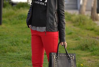 Hoy de nuevo un look cómodo y casual, combinando perfecto de cuero con pantalón de color rojo, que da un toque de color, y contrasta con el resto de prendas y complementos en negro.Hacía varias temporadas que no tenía unos pantalones de este color, asi que el otro día me decidí por estos de PIMKIE, que además de estar a un precio genial, se que les sacaré mucho partido.¡¡Espero que os guste mi propuesta y gracias por vuestras visitas!!Good morning!