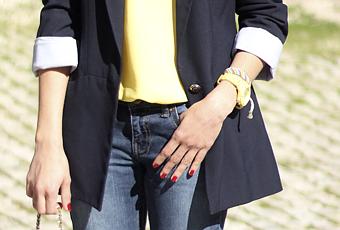 Long time ago I didn´t use to wear pants, but lately I wear them a lot; because is the only way I´ve found to wear the shoes, that I don´t like how they look with tights . Today I show you a very casual look. Yesterday I combined a pair of jeans with a yellow blouse, a blue blazer, and a pair shoes with red details.