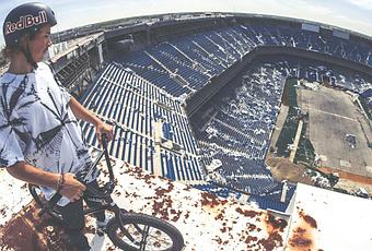 Mientras unos ven el talento del americano Tyler Fernengel usando la bicicleta como quiere en esta sesión de BMX en el histórico estado de Silverdome en Detroit. Yo veo un gran posicionamiento de la marca Red Bull situada en el espacio que se ha ganado.