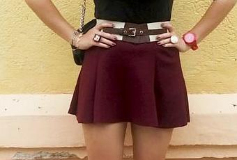 Camiseta: Zara – Falda: B’Shop – Zapatos: Mustang – Bolso: GuessPañuelo: Bijou Brigitte – Reloj: NEFF – Pulseras: Crucciani
