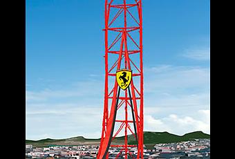 Sus coches están inspirados en modelos de F1 y la torre vertical cuenta con el famoso escudo del Cavallino Rampante de la escudería italiana. Su construcción comenzó en 2016 y está sostenida por 161 pilares y 3 cimientos de 6 metros de profundidad. ¡Toda una obra maestra de la ingeniería al servicio de la diversión!