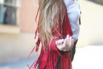 In 'country' style inspiration and in various shapes, colors and items, fringes remain in trend this fall and I have made my personal look with this NewChic jacket in red. In order not to appear too "cowboy" or "pocahontas" I've combined it with heeled sandals and leather effect trousers, giving it a rock style...! I hope you like the proposal!