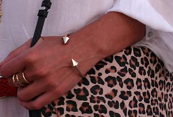 Si no lo he dicho antes os cuento ahora que soy una auténtica fan de los complementos con estampado de leopardo, en general los animal print me encantan, pero éste es mi ojito derecho. Desde luego soy muy selectiva con el dibujo y los tonos, ¡no todos me gustan! Este bolso lo compré por la web sin haberlo visto nunca en tienda y me gustó muchísimo más de lo que esperaba (también cogí los zapatos que van a juego, estaba todo super rebajado y no me pude resistir...) Lo estrené para salir a cenar con unos amigos, buscaba algo cómodo pero con gracia y decidí que el tándem rojo/blanco/camel le iría genial y bueno el resultado me gustó mucho! Estrené también la pulsera (New Icons Collection) y el anillo de H&M que son dorados y mi pregunta es: ¿Cuánto tiempo tardarán en ser verdes? ¡Espero que bastante porque me encantan!
