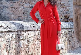 La verdad que nos ha dejado apáticos, destrozados y los que lo peor lo tienen abrumados y derrotados, pero con una fuerza descomunal para "tirar p´alante" y por ello el color rojo, el color de la fuerza.Volviendo al look, me gusta este estilo de vestidos y camiseros, de largo midi y abotados hasta el final que los puedes llevar abiertos a modo de blusón.Yo lo he querido combinar con complementos en color nude para no restar el protagonismo del vestido.Este estilo de vestidos estilizan un montón, por la caída que tienen y al llevar un cinturón, si lo anudas marcas la cintura.Ahora os dejo con las fotos y el vídeo: