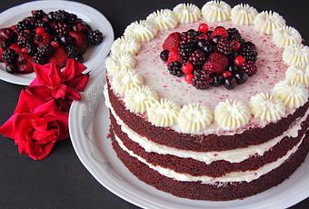Y como os he dicho en la lista de ingredientes finales... he coronado mi tarta con un puñado de frutos rojos: moras, fresas, frambuesas y arándanos. Mmmmmm... que además de estar buenísimos y aportar un toque de acidez a la tarta... combinan perfectamente en tonalidad con el conjunto final. Como lo veis vosotros? :)