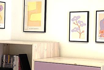 Le costó bastante elegir los cuadros, se ha tomado muy en serio lo que su habitación debía expresar y representar y los cuadros elegidos debían ser muy especiales, la suerte es que en Desenio puedes encontrar una gran variedad y pudo encontrar lo que buscaba. La verdad es que la elección no pudo ser mas acertada y está encantada con su habitación.