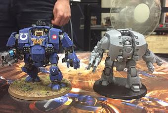 The Show must go on como cantaba Queen, por lo que vamos a continuar con el blog. Desde Faeit212 o mas concretamente desde esta cuenta de Twitter tenemos esta foto comparando el tamaño de Dread de asedio clase Leviathan de Forge Word (Os dejo sus reglas "pre-8ª") con el del nuevo Dread Redemptor de los marines espaciales, el Dread "Primaris" como se le llama desde que salio por primera vez a la palestra en el pasado Warhammer Fest.
