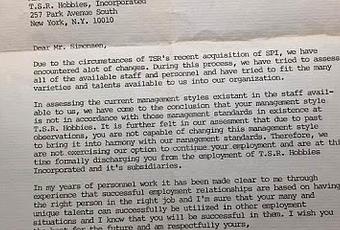 La carta que veis fue mostrada por uno de sus sobrinos hace unos años, cuando se le preguntó a la familia que había llevado a TSR Inc, a prescindir de un diseñador tan famoso y talentoso como el. La verdad es que queda meridianamente claro.