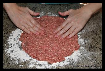 Al día siguiente, extender la carne sobre una superficie con harina para evitar que se pegue. Darle forma redonda y colocar los dos huevos cocidos enteros en el centro. Enrollar con cuidado y formar un redondo.