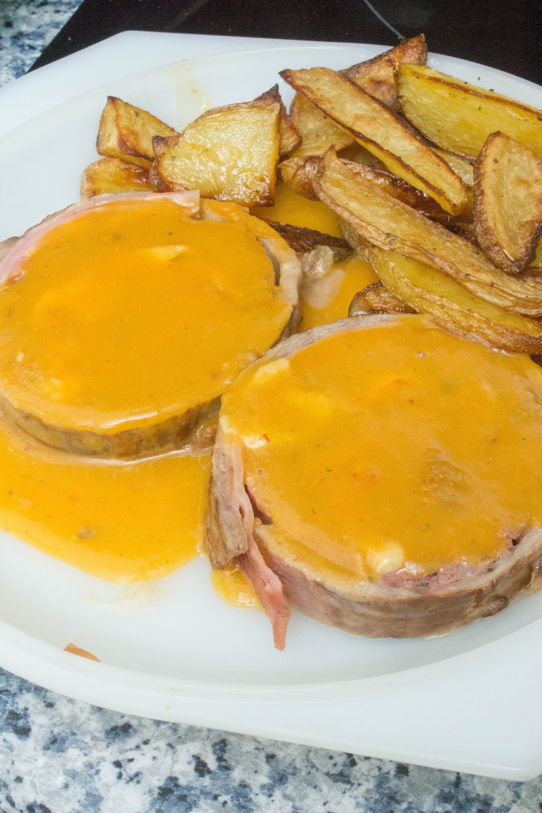 Hoy traigo un rico redondo de ternera en salsa de verduras con patatas al horno. Un plato de lo más completo y sano para comer en familia.