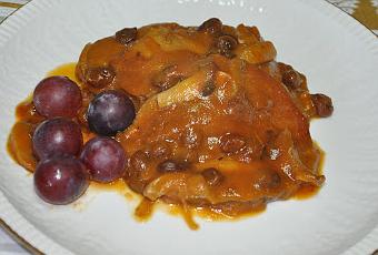 Nota: Si la salsa la queréis más espesa le podéis agregar una cucharadita de harina fina de maíz. Lo acompañé con unas uvas negras.