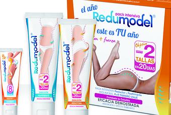 – Redumodel Reafirmante Día (250 ml): Producto de efecto drenante que elimina los líquidos retenidos y la grasa disuelta durante la noche. Su efecto frío recupera la elasticidad de la piel, activa la circulacióny alivia las piernas cansadas. Está formulada a base de Extracto Hidroglicólico de Hiedra (activa la microcirculación sanguínea y elimina la celulitis), Extracto Hidroglicólico de Lúpulo (astrigente, reafirmante, emoliente y antiséptico), Extracto Hidroglicólico de Castaño de Indias (tonifica arterias y capilares),Extracto Hidroglicólico de Centella Asiática (de poder cicatrizante, estimula la mitosis celular y favorece la biosíntesis del colágeno del tejido conjuntivo. También posee propiedades antiinflamatorias, antisépticas y revitalizantes), Mentol (de propiedades analgésicas que aportan una sensación de frescor muy agradable, además de aliviar la pesadez en las piernas).