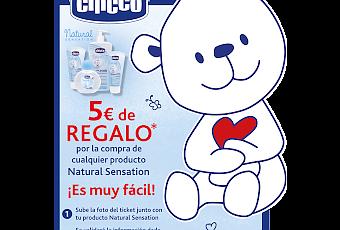 En Chicco tienen una promoción, en la que nos ofrecen el reembolso en la compra deproductos Chicco Natural Sensation (excepto las toallitas).Hay 1.000 reembolsos de 5€, para cualquier producto de la gama Chicco Natural Sensation.