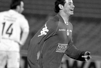 Mora festeja en Defensor, verdugo de Boca en la Libertadores 2009.