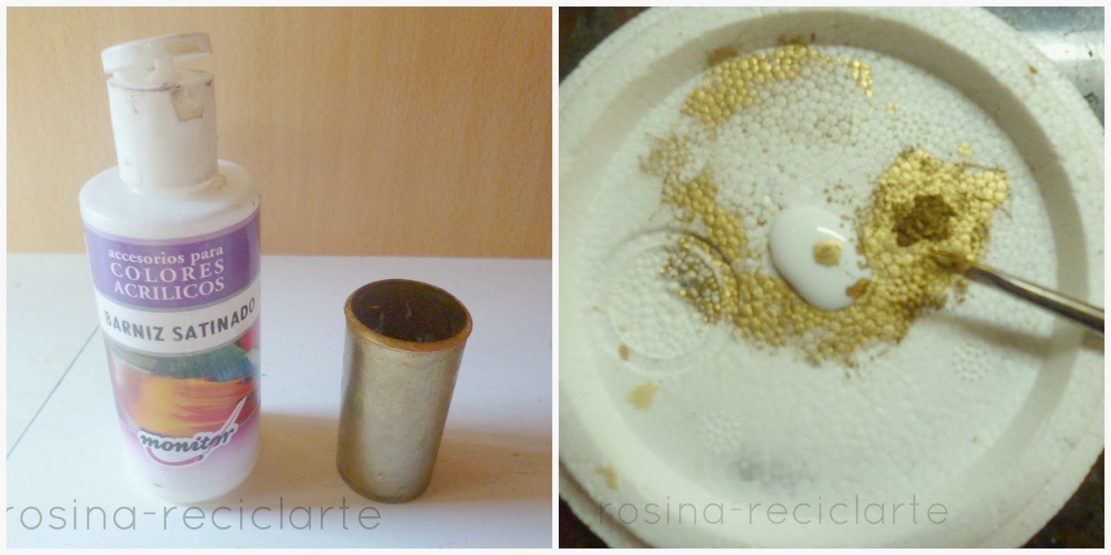 Esta mezclita que ves en la foto es la que usé para pintarla(purpurina + barniz)