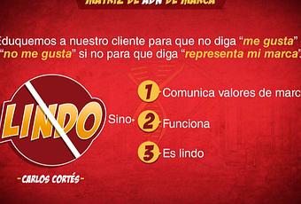 Ahora, las verdades de una marca, son las verdades de la marca. Las verdades de Hugo Boss pueden no ser las verdades de Nike, pueden no ser las verdades de Sandwich Qbano, pueden no ser las verdades de Christian Dior, o sea, las verdades de cada marca son sus verdades y normalmente cuando la construcción de esa marca se ha hecho de una forma no impostada, realista, de humanos para humanos normalmente esas verdades están basadas en valores de marca.