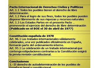 La Constitución española, que cuando se sometió a referéndum el único partido que hizo campaña en contra fue Alianza Popular, partido antecesor al PP, mientras hoy día el mismo partido con otro nombre la ha ascendido a los altares desde donde les permite restablecer la dictadura, en su artículo 96.1 dice que los tratados internacionales a los que España se adhiera una vez publicados oficialmente en España formarán parte del ordenamiento jurídico interno, y el artículo 95.1 deja claro que si algún tratado internacional contiene estipulaciones contrarias a la Constitución requerirá su revisión constitucional. Por supuesto puedo confirmarlo porque he hecho la comprobación correspondiente no solo en el texto de la Constitución sino en la web del Tribunal Constitucional para comprobar que nunca han publicado resolución alguna sobre el Pacto Internacional de Derechos Civiles y Políticos, el OHCHR, y ni tan solo lo mencionan en sus fallos contra la Declaración de soberanía y del derecho a decidir del pueblo de Cataluña del Parlament catalán.