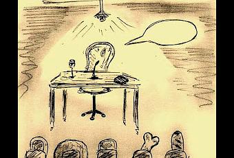 trozos de carne pensante,escuchando al trozo parlante;dirigiendo su atención, sus miradas y envidias,al pedazo de carne cantante.Todos cachos de carneperecedera,que se piensan muy pensantes,mas que nadie, ergo sum,y olvidan que no son másque potenciales hamburguesas, soñando entre el cemento con glorias vanas.