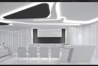 Cobra especial importancia la iluminación que se distribuye de forma escultórica por todo el techo con el uso de leds con distinta intensidad, que el propio usuario puede regular. Ocupa uno de los frontales una chimenea de bioetanol de estructura alargada que termina de dar calidez al entorno. Se usan también en la decoración las bolas de acero en distintos tamaños creando distintos conjuntos.