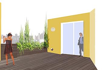Se opta por eliminar por completo una construcción ilegal existente en la terraza y recuperar la superficie total original, para ello se realizará el derribo de esta parte, se sustituirá por completo la cubierta creando nuevas pendientes y se acabará con una superficie de tableros de composite de madera.
