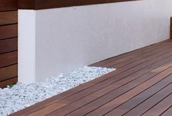 Una vez definido el esquema espacial trabajamos con los materiales, las líneas rectas de la madera contrastan con la voluptuosidad de las macetas y las floraciones. La madera de exterior da un toque de suavidad al diseño y las fugas consiguen dar un aspecto contemporáneo y actual.