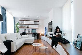 Una vivienda en la que prima la amplitud, la comodidad, la luminosidad y el diseño. En ella podemos encontrar piezas como la Rocking Chair de los Eames, el reloj de la cocina de George Nelson, o la lámpara Milk de Norm architects. Un cálido suelo de tarima de bambú maciza, combinado a la perfección con unas puertas y muebles de líneas puras y en su mayoría blancos, otorgando así a la vivienda un ambiente sin estridencias, destacando el equilibrio y la armonía.