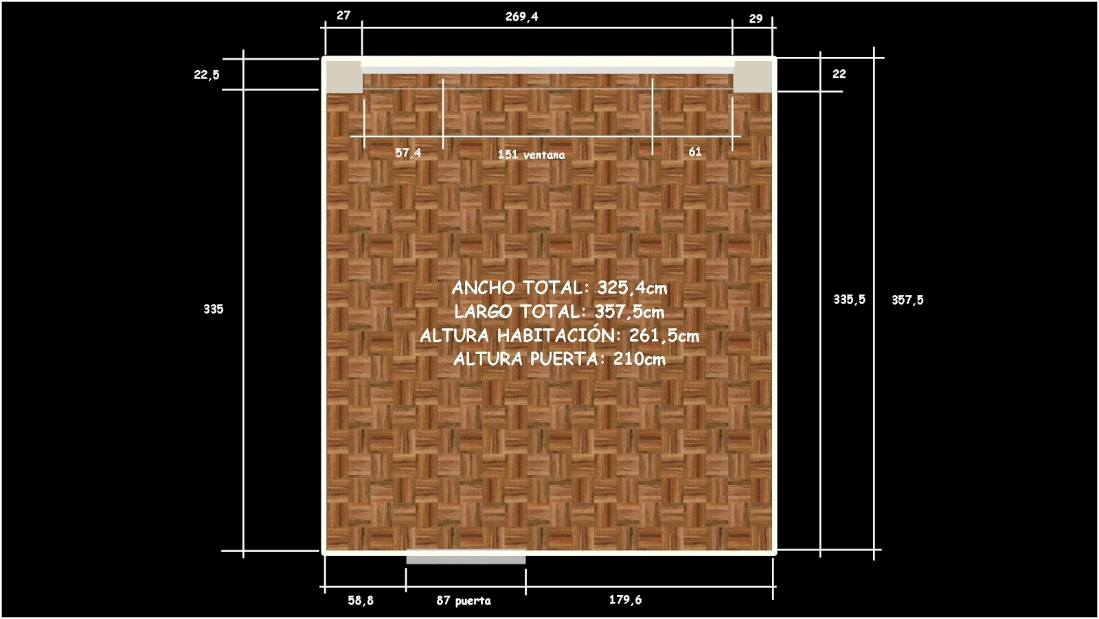 Una vez que mis padres iban a retirar todo el mobiliario para dar paso al nuevo, decidieron que era buen momento para cambiar el suelo de la habitación.En lugar de lijar y barnizar el suelo existente, decidieron colocar suelo laminado meister con rodapié similar y pletina de terminación para corregir los milímetros de diferencia que dejará el suelo nuevo con el existente. El laminado es de roble ahumado claro (Ref. 6169).La medida de cada tabla es:- Ancho: 198mm.- Largo: 1288mm.- Grosor: 8mm.Este suelo tiene una garantía de 20 años para uso domésticoPara instalar este tipo de suelos, el suelo debe estar seco, bien nivelado y limpio.