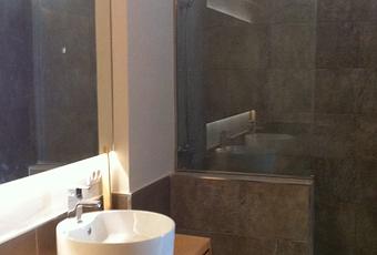 We enlarged the main bathroom and we incorporated it to the main bedroom. The wall separating from the bedroom has an upper part made of glass to allow natural light to come in. The shower is made to measure as well as the vanity, made of natural beech. The mirror is placed on top a a frame with leds around it that project a very decorative light.