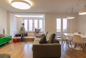 Este piso de 160 m2 se ha reformado para adaptarlo a las necesidades de una familia con tres hijos. La distribución inicial respondía a una vivienda antigua con dos entradas, una principal y otra para el servicio, además de 4 dormitorios. Para la nueva vivienda se decidió partir de cero, se demolió lo existente y se ha realizado una distribución más adaptada a un uso actual, con un espacio común generoso y flexible.