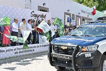 En esta ocasión, el municipio recibió tres camionetas doble cabina, ocho vehículos sedanes y cuatro motocicletas, además de 50 chalecos balísticos, 10 cascos, 130 botas tácticas, 260 camisas, 130 chamarras, 260 gorras y 260 pantalones tácticos, con el objetivo de dotar de mayores recursos a la corporación local.