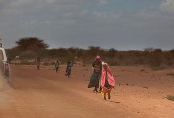 Una mujer camina por la carretera en Dadaab, Kenia, 8 de agosto de 2011. Fotografía en dominio público de David Linemann