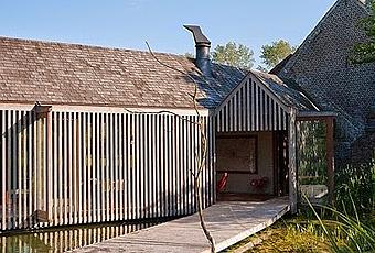 Este es particularmente interesante ya que se construyo sobre un pequeno lago o laguna, el diseno es obra del estudio Wim Goes Architectuur de Belgica