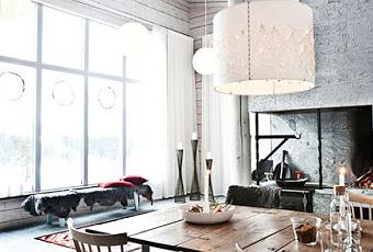 La casa cabana, tiene mobiliario de madera, de distintos estilos, y con toques de color minimo, y muchos detalles rusticos, como pieles, ornamentas, etc.