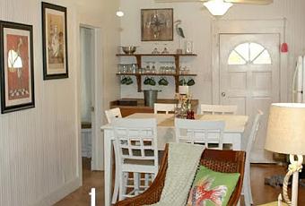 La pequeña casa esta construida en madera, y pintada de colores en su exterior, su interior es blanco con detalles marineros