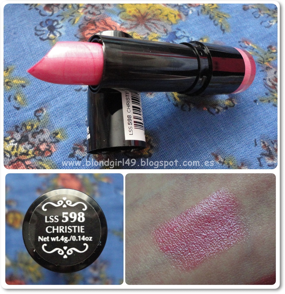 Este es el 598 Christie de Nyx, tiene un tono muy bonito en rosa con un acabado muy escarchado, tanto que parece que el tono pierde el color rosado cuando se ve a la luz. Tengo algunos labiales de esta marca y a mi personalmente me encantan, sé que muchas chicas tienen problemas porque les parece demasiado cremosos, es cierto que algunos lo son bastante y no duran muchísimo tiempo como muchas otras marcas, pero tienen una gran variedad de tonos y acabados a un precio buenísimo. Casi todos tienen olores, son bastante artificiales pero los que yo tengo me gustan los aromas :DAbajo tenéis el swatche: