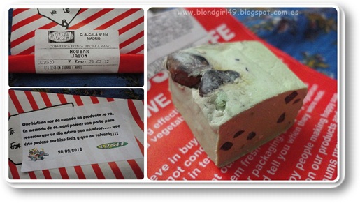 *NOUBAR - JABÓN*Por lo visto es un jabón que estaban retirando, es una pena cuando dejan de tener según que productos pero también hay que dar paso a cosas nuevas^^En la web ponía:¡Para amantes del helado de pistacho! (como mi chico :O)Fue el primero en usar una basde de jabón libre de aceite de palma (el resto le siguieron rápidamente). Tiene trocitos de pistachos, almendras y nueces para dejar tu piel suave, hidratada y muy nutrida.Ingredientes: Agua (Aqua), Glicerina, Aceite de Colza; Aceite de Coco (Brassica napus; Cocos nucifera), Cacahuetes Troceados (Arachishypogaea), Almendras Troceadas (Prunus dulcis), Nueces Troceadas (Juglans regia),Hidróxido de Sodio, Perfume, Dióxido de Titanio, Pistachos (Pistacia vera), Extracto de Gardenia (Gardenia jasminoides), Aceite de Vetivert (Vetiveria zizanoides), Absoluto de Rosa (Rosadamascena), Aceite de Cedro (Cupressus funebris), Cloruro Sódico, EDTA, Etidronato Tetrasódico, Geraniol, *Citronellol, Color 42090*SO WHITE - BOMBA DE BAÑO*[Edición limitada Navidad]En el catálogo pone:Tan tentadora como la manzana de BlancanievesSumérgete bajo un cremoso y blanco manto de burbujas con un intenso olor a manzanas asadas para escapar del estrés que pueden causar estas fechas (navidad). Tendrás montones de burbujas para un baño extra-espumoso, cálido y suavizante. Te sentirás parte de un cuento, pero esta vez la vbruja malvada no aparecerá. (el príncipe lo pones tú).Ingredientes:Bicarbonato de Sodio, Ácido Cítrico, Perfume, Ácido Tartárico (Potassium bitartrate), Laureth Sulfato de Sodio, Aceite de Bergamota (Citrus Aurantium bergamia), Absoluto de Rosa (Rosadamascena), Absoluto de Azahar (Citrus Aurantiumamara), Aceite de Nerolí (Citrus Aurantium amara), Cocamide DEA, Lauryl Betaine,*Limoneno, *Linalool*MAGIC MUSHROM - BURBUJA*[Edición limitada San Valentín]En la web pone:Una seta mágica de fresas y nuestro perfume Vanillary para poner un montón de divertida y mágica espuma a vuestro baño. Unas velas, música romántica, vuestra bebida favorita y todo vuestro amor... ¡sin duda compartiréis un baño memorable!Un brochecito de corazón cuquísimo que detrás tiene un imperdible para ponerlo donde quiera^^*Chocomanía de The Body Shop*Los botecitos de Loción corporal y gel de baño de la colección chocomanía de The Body Shop. Son una perdición con el olor a chocolate que hacen, dan ganas de comérselos jajaja y. además, no empalagan como otros aromas.Cada uno de los botecitos contiene 60mlUnos llaveritos preciosísimos de un gatito de trapo (que venía con una agenda que también me envió) y una matrioska que me estoy llevando a los exámenes para ver si me da suerte :D