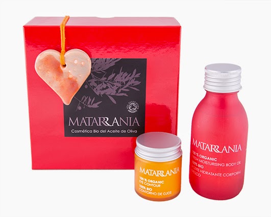 Este Pack Mujer es un regalo especial de Matarrania que contiene el contorno de ojos, aceite hidratante corporal limón,naranja y mandarina BIO y un ambientador artesanal de cerámica esmaltada con forma de corazón con aceite esencial de lavanda.