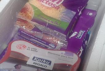 ¡Hace varias semanas me llegó a casa un pedazo paquete! ¡Parecía una niña pequeña abriendo los regalos de Reyes! Se trata de la segunda ocasión que gano algo; la primera, un delantal. En este caso ha sido más contundente en todos los sentidos y muy útil para mí por la intolerancia a la lactosa. Ya he comenzado a dar salida los productos. Por ejemplo: la leche y el queso en lonchas en el desayuno o el queso rallado para gratinar unas berenjenas que quedaron riquísimas. Uso esta marca está desde que está en el mercado sobretodo leche y yogures, que me resulta sencillo encontrar. Ahora, los quesos y las natas, ¡qué dificultad para conseguirlas!, no suele haber casi nunca. El jueves hicimos una pequeña compra y había nata, así que cayó directamente en la cesta para poder hacer postres estas Navidades. El paquete lo recibí en el recipiente de corcho de la foto inferior con unos conservadores del frío como los que empelamos para las neveras cuando nos vamos de excursión.