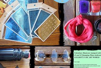 Como véis, son plaquitas de estampación, estampadores de "los nuevos", bases para anillos y dos detalles muy especiales de la blogosfera. Os los voy enseñando.