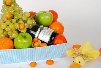 Podemos enviarles la cesta de frutas, tanto al Hospital como a su casa, seguro que la sorprende a ella y a su entorno muchísimo, y eso es lo que queremos llevar felicidad y alegría a los miembros de una familia que crece.