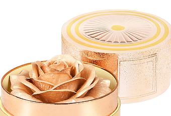 LA ROSE ÀPOUDRER de Lancôme: Gran rosa iluminadora empolvada hecha de un tejido delicado. Cada pétalo contiene polvos iluminadores dorados resplandecientes. Cuenta con un packaging lujoso de un color dorado rosado con destellos dorados. Edición Limitada.