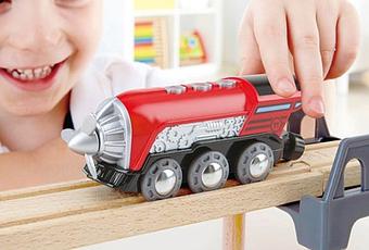 No sé si es porque tienen ruedas, porque hacen ruido o por qué será, pero en mi casa los dos desmadrosos les han encantado los trenecitos de siempre. Curiosamente llegaron a casa a partir de que los peques tuvieron 3 años, pero ahora con los circuitos de trenes infantiles de Hape hay sets que son adecuados a partir de 18 meses, llenos de color y con complementos de juego sensorial.