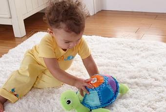 La tortuga musical es un peluche suave de colores llamativos y distintas texturas que permite componer canciones apretando los distintos colores del caparazón de la tortuga. La etiqueta es también un libro de partituras para tocar distintas canciones. Arriba la veis en la foto.