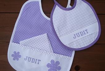 Babero pequeño y, otro para la papilla con su servilleta a juego.