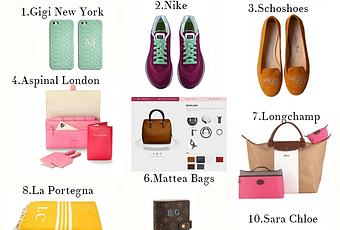 1.Gigi New York 2.Nike 3.Schoshoes 4.Aspinal of London 5.Mattea Bags 6.Longchamp 7.La Portegna 8.Louis Vuitton 9.Sara Chloe