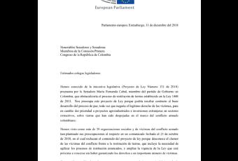 “Nos preocupa este proyecto de ley porque podría resultar contrario al buen desarrollo del proceso de paz, toda vez que negaría el legítimo derecho de las víctimas, para en cambio dar prioridad a proyectos agroindustriales e inversiones extranjeras en sectores extractivos, sobre tierras que han sido despojadas en el marco del conflicto armado colombiano” dice la carta firmada por congresistas de Francia, España, Reino Unido, Alemania, Bélgica e Italia.